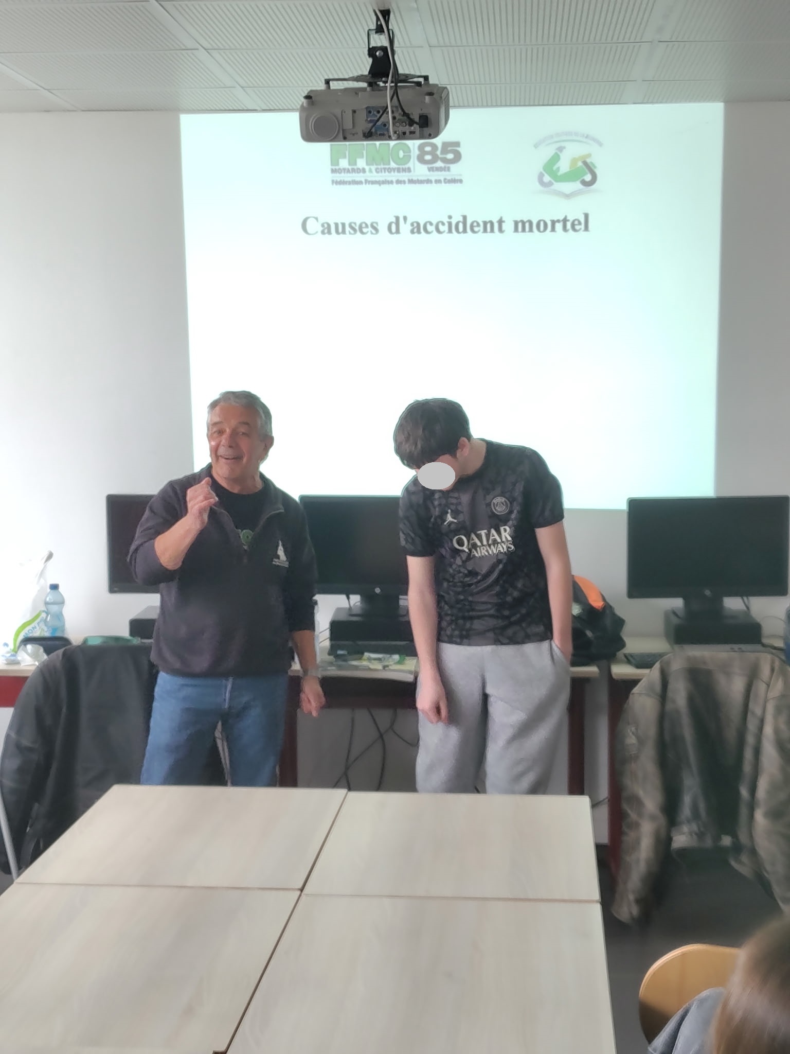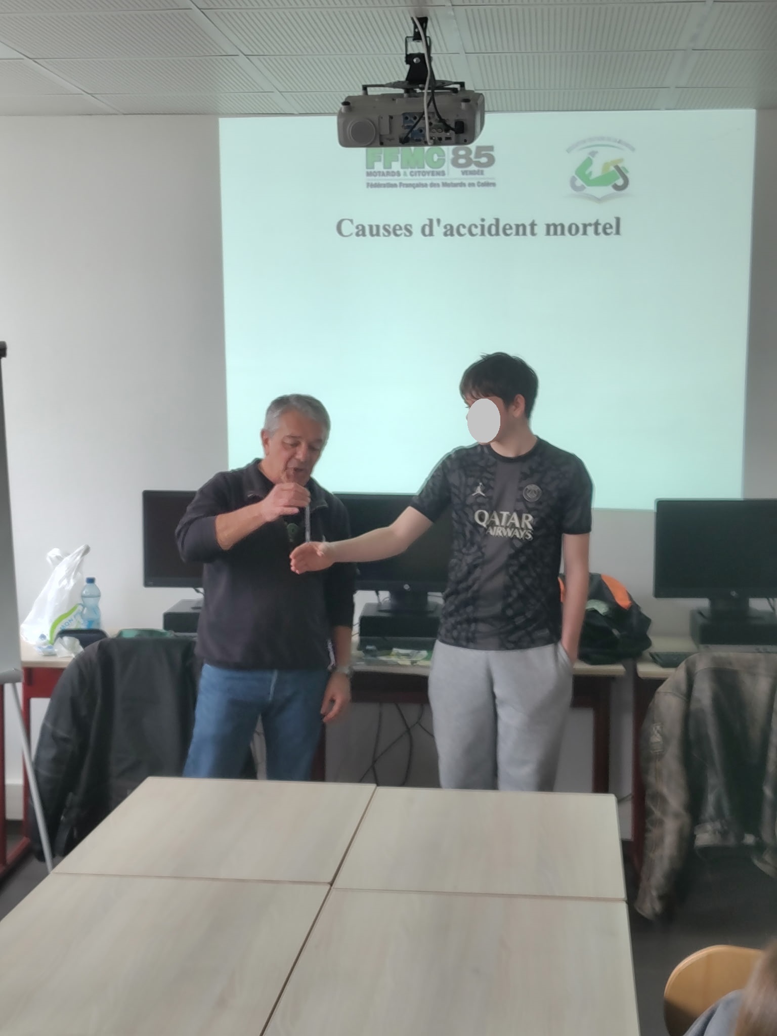 Lors de la dernière heure, le professeur a trouvé notre prestation super et très intéressante, il pense qu’il faudrait encore plus sensibiliser les élèves aux dangers de la route.’’