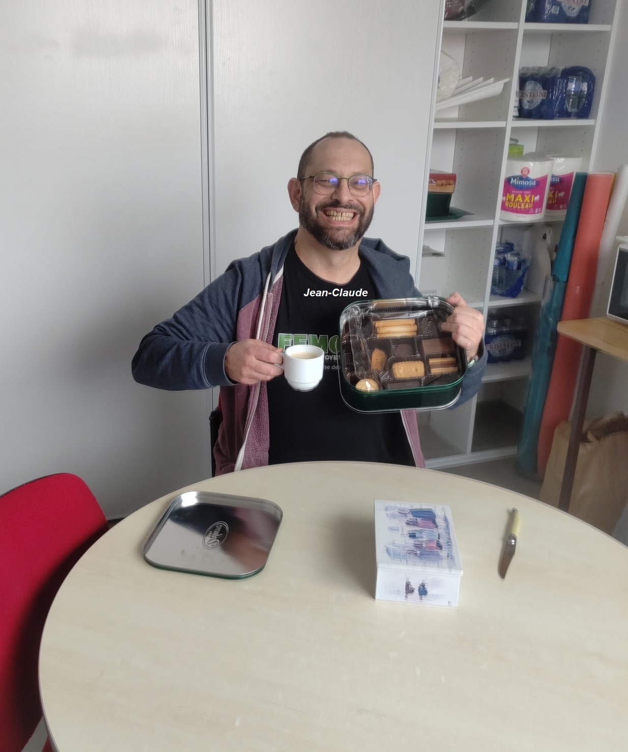 Au déjeuner nous avons eu la visite surprise du professeur ex St Joseph, il est venu prendre le café avec nous, c’était super sympa !