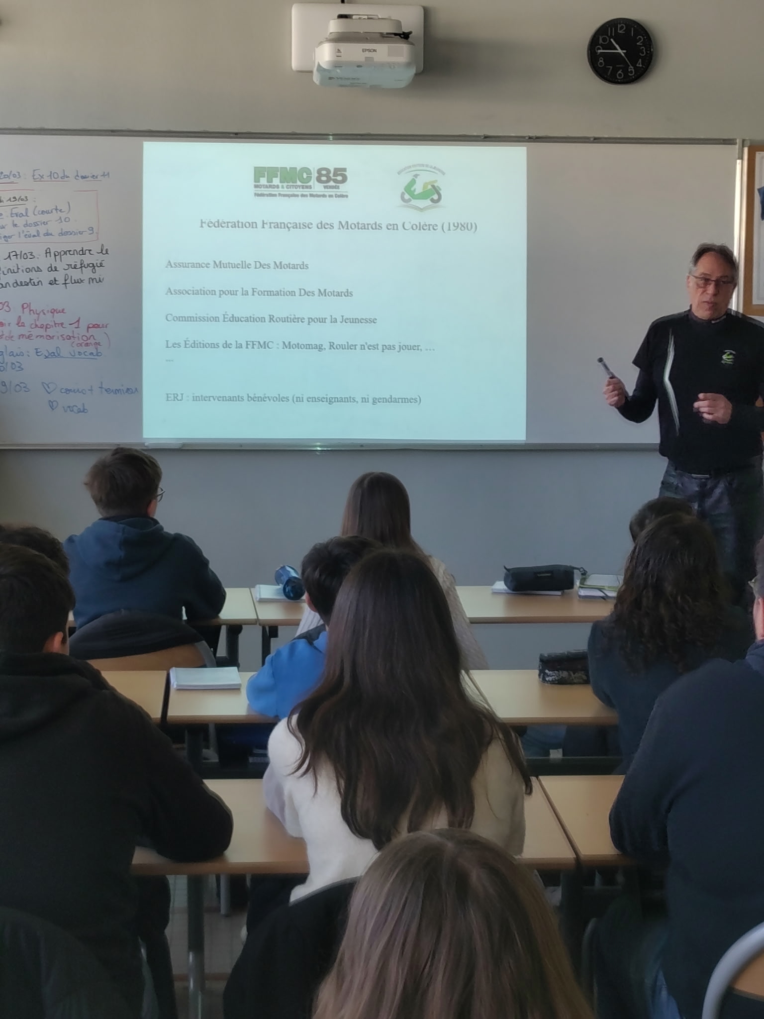 Le collège privé Antoine de Saint-Exupéry à Pouzauges accueillait mardi 17 et jeudi 19 mars 2026, Bernard, Jean-Claude, Pascal B., Pascal L., nos bénévoles ERJistes.